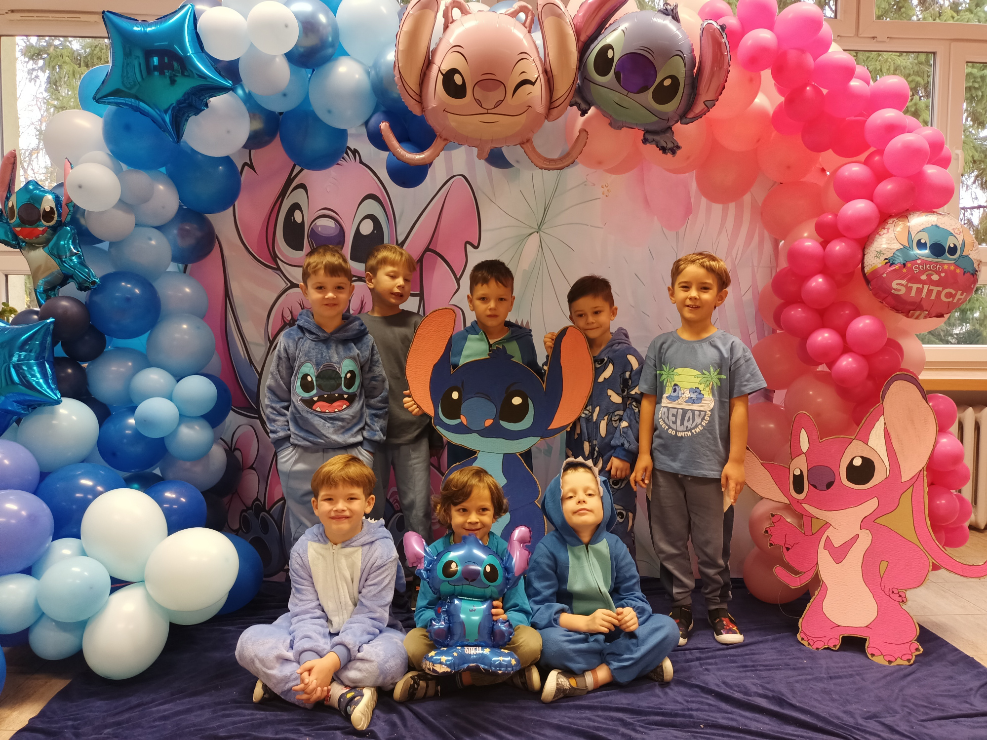 " Bal Postaci z Bajek" w tym roku szkolnym odbył się pod hasłem zabaw bajkowych ze Stichem. W tym dniu dzieci przebierały się w Stichowe stroje i zrobiło się w naszym przedszkolu całkiem niebiesko i różowo.